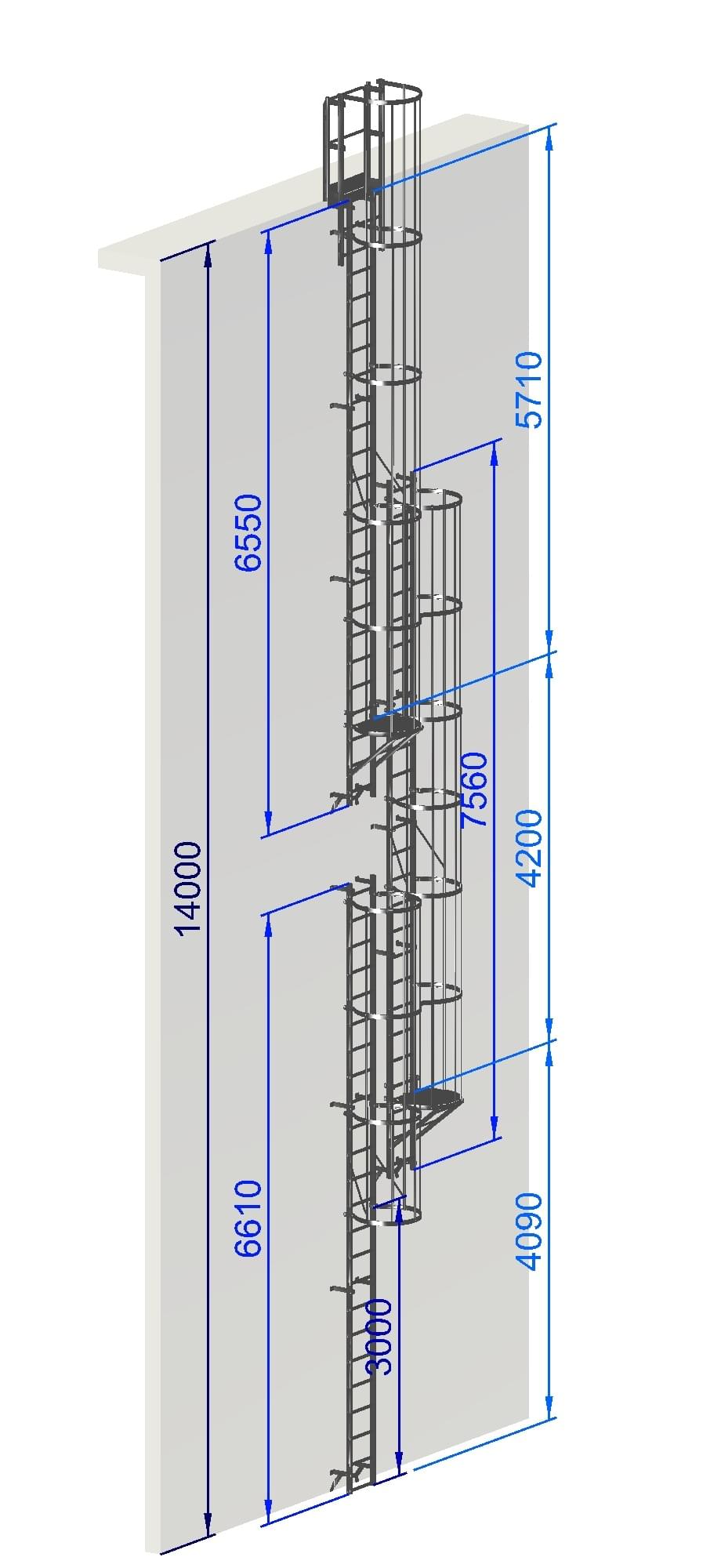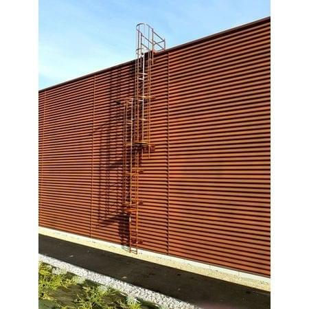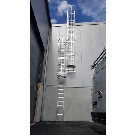 Con o sin cambios de tramo, con plataforma para paso de muro perimetral, con o sin aros de protección dorsal, sistemas de condenación de acceso. Las escaleras de L’Échelle Européenne permiten todo tipo de configuración.